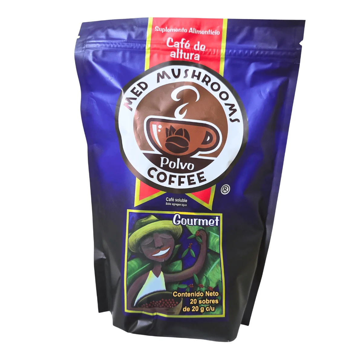 Café Medi Mushrooms con Ganoderma: Disfruta de un café gourmet único, enriquecido con ganoderma, maitake y shiitake para una experiencia de sabor excepcional y beneficios para la salud. Cada bolsa contiene 22 sobres de fácil preparación. ¡Prueba el café que combina sabor y bienestar!